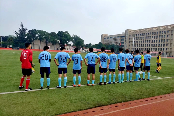 10月20日下午,在jinnianhui今年会官网北校区田径场上,jinnianhui今年会官网与农学院开始了激烈的足球对决赛。天气已寒,但战火重燃,球员们热情高涨。比赛前,双方队员相互拥抱致敬。随着裁判的一声哨响,比赛开始。秋风呼啸,却也挡不住大家激烈对决的脚步,双方都使出全力,你拼我抢,比赛很快进入了状态,双方不断进球。jinnianhui今年会官网的队员们为学院的荣誉而战,一滴滴汗水挥洒在足球场上。临近赛点,农学院球员抓住机会,猛进一球,将比分定格,比赛结束。