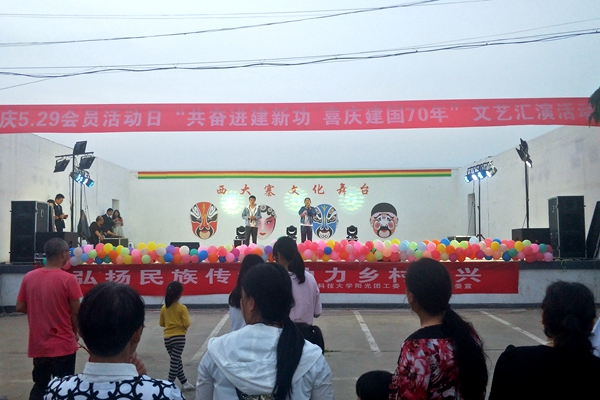 为了保证活动能够顺利如期的进行,村助理们和艺术团的同学们提前赶到寨东村,在寨西村文化广场进行活动宣传等工作。在全体工作者的全力配合下,活动如期进行。本次活动以炫酷的街舞开场,瞬间调动了现场的气氛;一曲《红旗飘飘》,嘹亮、深厚的歌声传达出当代青年炽热的爱国情怀;村民们相约跳起广场舞,欢快的舞姿顿时让大家感受到了质朴的劳动人民对美好生活的珍惜和乐观向上的生活态度……最后,一首《生僻字》的独唱为本次活动拉下了帷幕,歌中那些晦涩难懂的中国汉字,让在场观众感受到了中华文明的博大精深,同时也为中华民族拥有悠悠五千年历史而倍感自豪。
