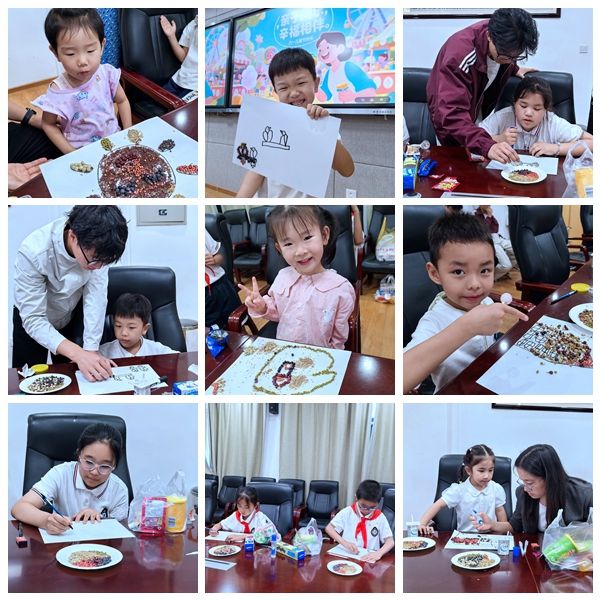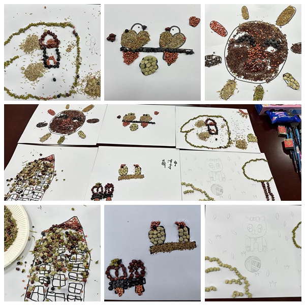 活动以形态各异、色彩丰富的草种作为核心创作材料,吸引了教职工携子女热情参与。在专业手工老师的指导和家长的陪伴下,孩子们先用铅笔勾勒出心中的图案——憨态可掬的动物、生机勃勃的植物、温馨的家园……随后,他们小心翼翼地运用胶水,将一粒粒草种耐心细致地拼贴在画稿上。创作过程中,家长们轻声讲解着不同草种的名称与特性,将草业知识的启蒙自然而然地融入温馨的亲子互动时光。