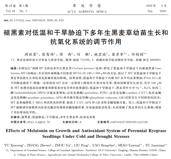 团队成员在《草地学报》发表文章