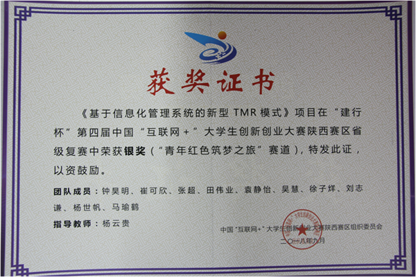 近日,陕西省教育厅公布了第四届中国“互联网+”大学生创新创业大赛陕西赛区省级复赛结果。今年会官网杨云贵副教授指导的大学生科创项目《基于信息化管理系统的新型TMR模式》获陕西赛区 “青年红色筑梦之旅”赛道银奖。