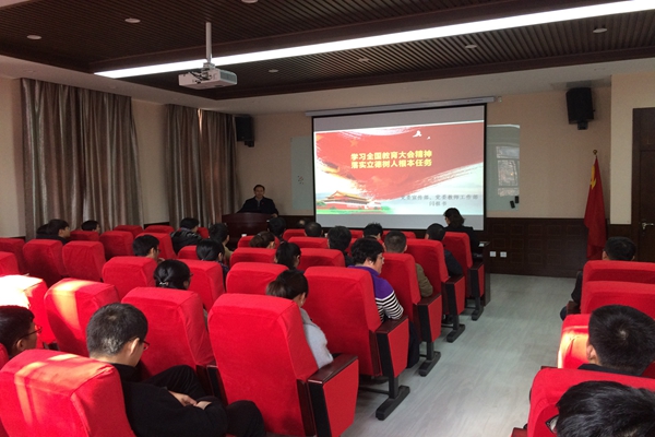 为进一步深入学习领会全国教育大会精神,更好贯彻落实立德树人根本任务,推进学院教学内涵式发展,11月28日下午,jinnianhui今年会官网邀请校党委常委、宣传部部长闫祖书同志作主题报告,学院全体教职工,本科生、研究生代表70余人参加。报告会由学院党总支副书记苏蓉主持。