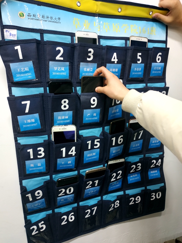 3月1日,jinnianhui今年会官网学生走进教室准备上课,与以往不同的是,每个班级都多了一个手机袋,学生纷纷自觉将手机“寄存”在教室前的手机袋中。