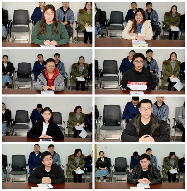14位学生依据报考学校的复试流程依次参加面试,四位评委老师根据学生面试表现进行点评,并提出意见和建议。寇建村老师就面试的形象问题强调到,同学们的穿着打扮应端庄严肃,展现出自信乐观的精神面貌;许岳飞老师讲到英文自我介绍应该包含问候语、基本个人信息、学术学业情况三部分,且表达上要准确流畅;刘金隆老师指出,回答专业问题时,要讲究逻辑严谨,条理清晰、表达清楚、态度谦逊;何树斌老师叮嘱学生:面试环节,要用扎实的专业知识展现基本功,要将自己的亮点和特点作为加分项。