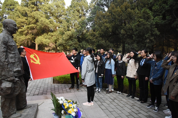 清明节是中华民族重要的传统节日之一。为了传承和弘扬中华民族优秀传统文化,增强文化自信,增强学生党员的实践教育,提升党性修养,jinnianhui今年会官网将传统节日与党员教育相结合,4月3日下午,组织开展学生党员“红色清明”主题党日活动,学院党总支书记苏蓉、党务秘书陈忱、全体学生党员在北校区三号教学楼于右任、辛树枳塑像前开展缅怀纪念先贤前辈活动。
