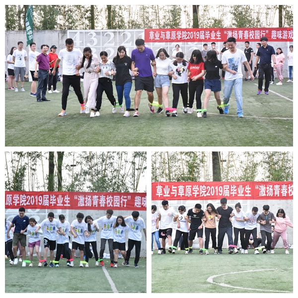 比赛分为草业151班、草业152班、毕业研究生三个代表队进行,活动由滚雪球、心心相印、十人十一足、无敌风火轮四个项目组成。随着裁判员一声令下,比赛拉开序幕,同学们手拉手,肩靠肩,相互协助,互相加油,团结一心投入比赛。骄阳照在他们的脸上,汗水洒向这片即将道别的土地。欢笑声、加油声、呐喊声此起彼伏,响彻天空。