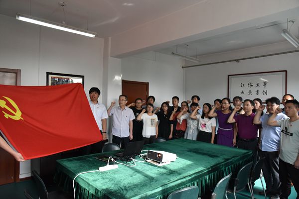 7月1日是中国共产党成立98周年,学院党总支组织全体教工党员在学院409会议室开展“重温入党誓词 不忘初心使命”主题党日活动,献礼党的生日。