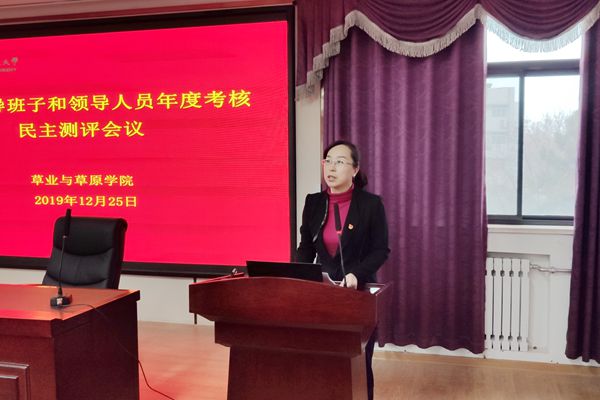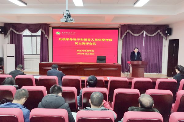 学院院长呼天明代表领导班子作2019年度述职报告。他从党建和思想政治工作、扎实开展“不忘初心、牢记使命”主题教育,党风廉政责任制实施、科学推动学院重点工作开展情况及当前学院存在的问题与不足和改进措施等方面全面总结了一年来的工作。