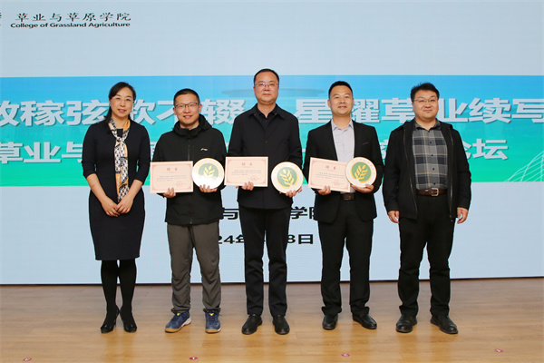 在校友论坛上,三位校友向师弟师妹们分享了自己的在校求学经历、职业选择与职业发展历程、以及在个人发展中遇到的挑战和机遇。在主持人问答环节,三位校友结合自身工作经历分别从科学研究、基层工作、企业就业三个方面的视角为大家详细解答了专业技能与知识在工作中的应用、在校期间的经历对职业发展的影响以及对草业科学专业发展趋势等问题。在现场提问环节,三位校友就现场学生对升学、考公、企业求职等方面的问题进行耐心解答并对草业学子择业就业问题给予意见和建议。学院党委书记苏蓉、学院院长杨培志为三位校友颁发了校友“校友育人导师”聘书与校徽纪念品。