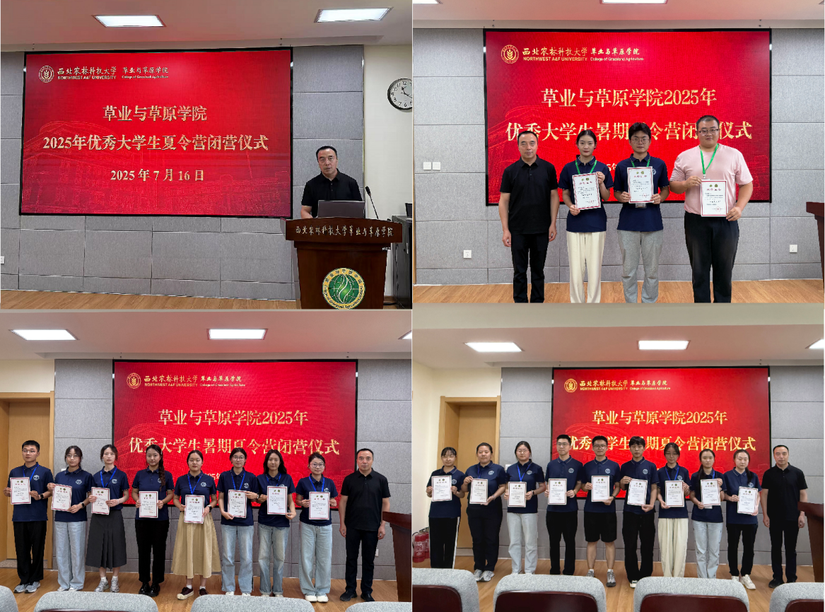7月16日,学院组织了专业素质测评,专家组从科研潜力、创新思维、专业基础等方面对营员进行综合考核,最终评选出17名优秀营员。闭营仪式上,温仲明副院长为夏令营作总结致辞。他肯定了营员们在短短两天中的积极探索与成长,并寄语青年学子以此次夏令营为起点,持续深耕草业科学领域,以专业所长助力生态文明建设。仪式现场,温仲明副院长为全体营员颁发结业证书,为优秀志愿者授予荣誉证书,同时为优秀营员颁发获奖证书,见证他们在这场学术之旅中的收获与成长。
