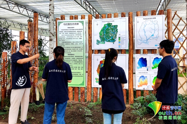 图为实践团队队长向队员介绍乌拉盖草原生态系统资源现状。中国青年网通讯员 邵梓桐 摄