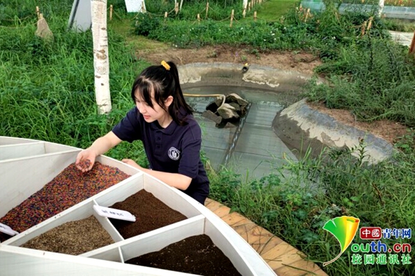 图为团队成员置身模拟原始次生白桦林生态系统,了解白桦树相关知识。中国青年网通讯员 罗盛 摄