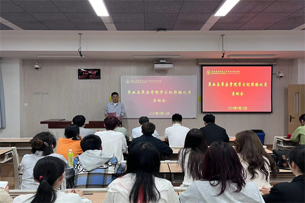 会上,学院辅导员李志鹏老师宣读学习纪律强化月工作方案并强调本科教育教学评估应知应会。