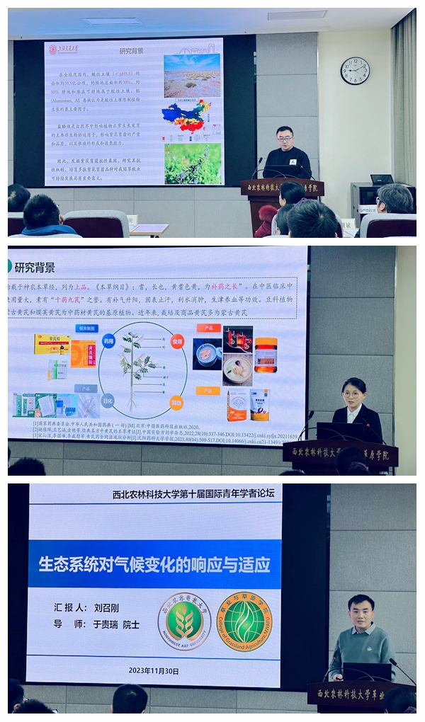 11月30日上午,jinnianhui今年会官网第十届国际青年学者论坛草业学院分论坛在228报告厅举行,来自上海交通大学、中国农业大学、中科院地理资源所的3位青年学者齐聚学院,参加了论坛交流和研讨。论坛由学院副院长(主持工作)杨培志教授主持。学院领导班子,教授委员会、全体教师和部分研究生100余人参加了论坛。